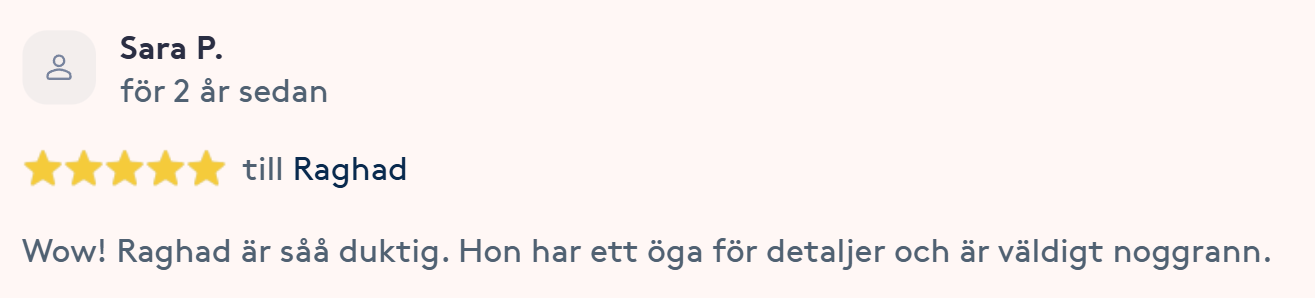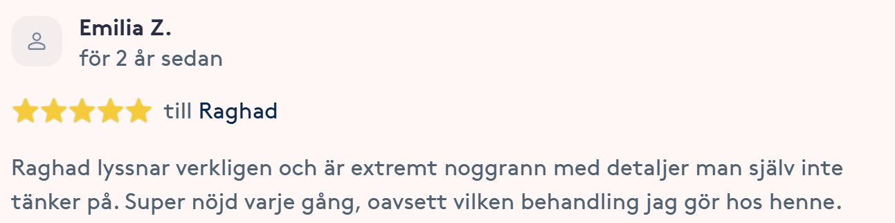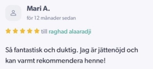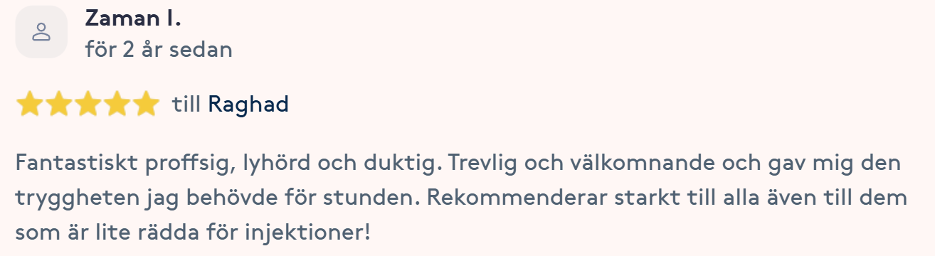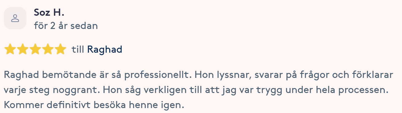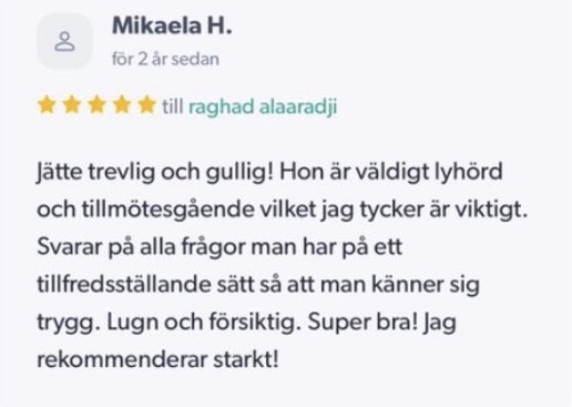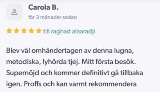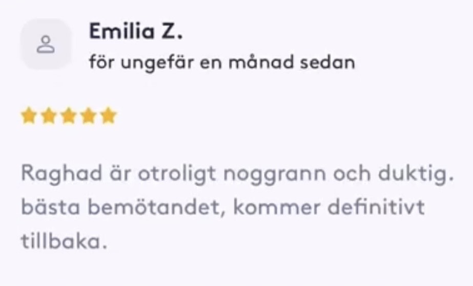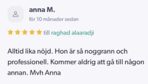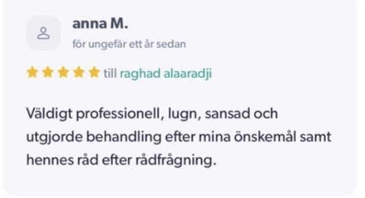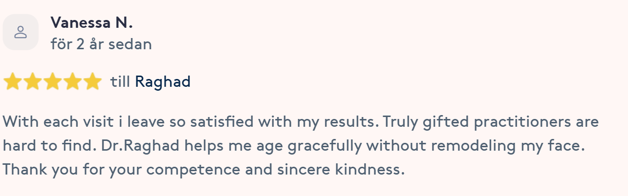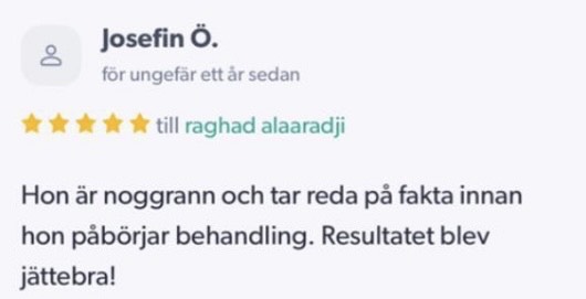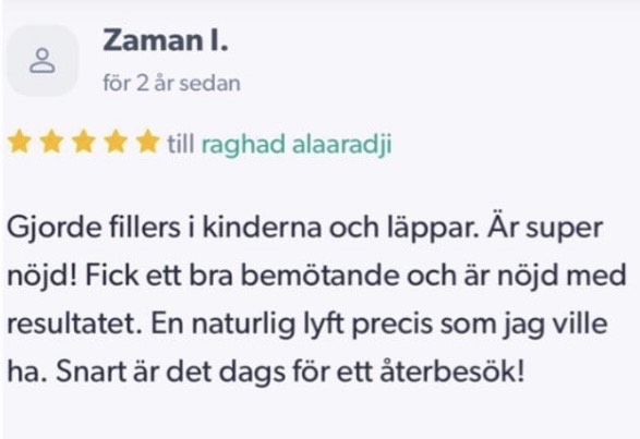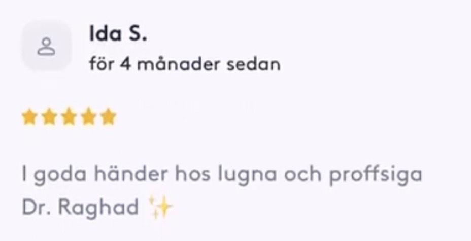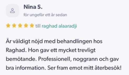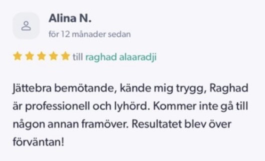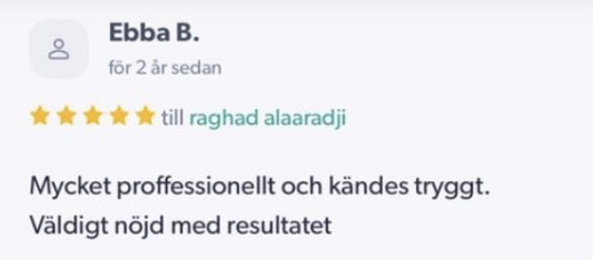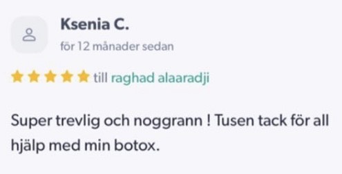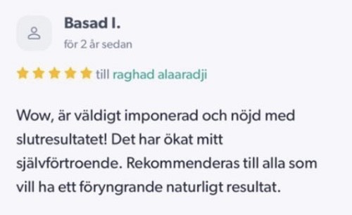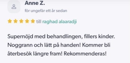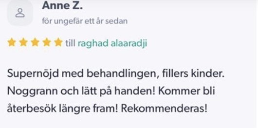 Publicerat på Maryam OkarTrustindex verifierar att den ursprungliga källan till recensionen är Google. Jag är mycket nöjd med min upplevelse hos Dr.Dentobeauty. Hon visade stor professionalitet, noggrannhet och ett utmärkt bemötande. Under hela processen kände jag mig väl informerad och trygg. Behandlingen utfördes varsamt och resultatet blev naturligt, exakt enligt mina förväntningar. Jag uppskattar särskilt Raghads känsla för estetik och lyhördhet för mina önskemål. Jag kan varmt rekommendera henne till den som söker en trygg och kompetent behandling inom estetisk medicin.Publicerat på KlaraTrustindex verifierar att den ursprungliga källan till recensionen är Google. Fantastiskt duktig och professionell